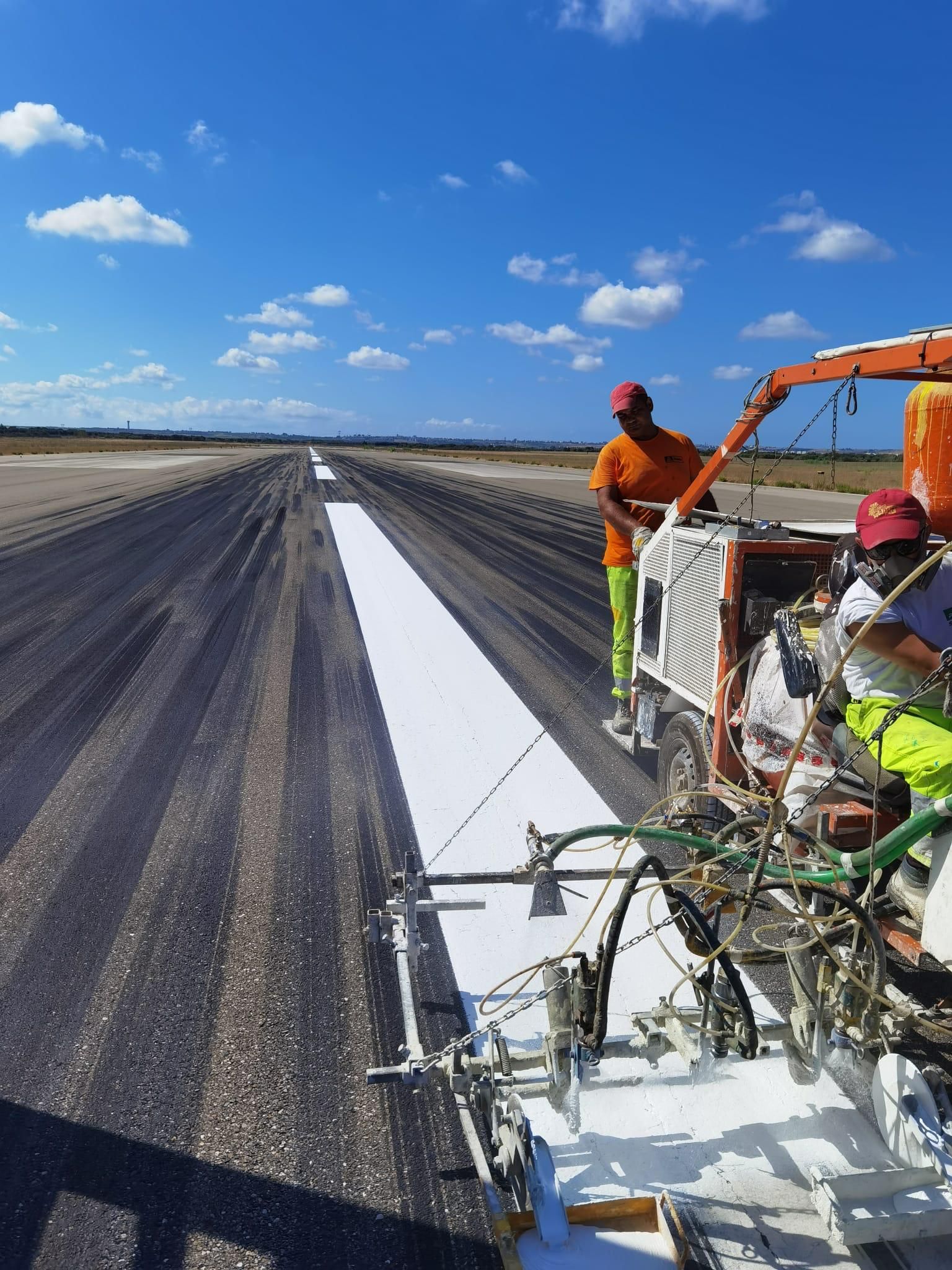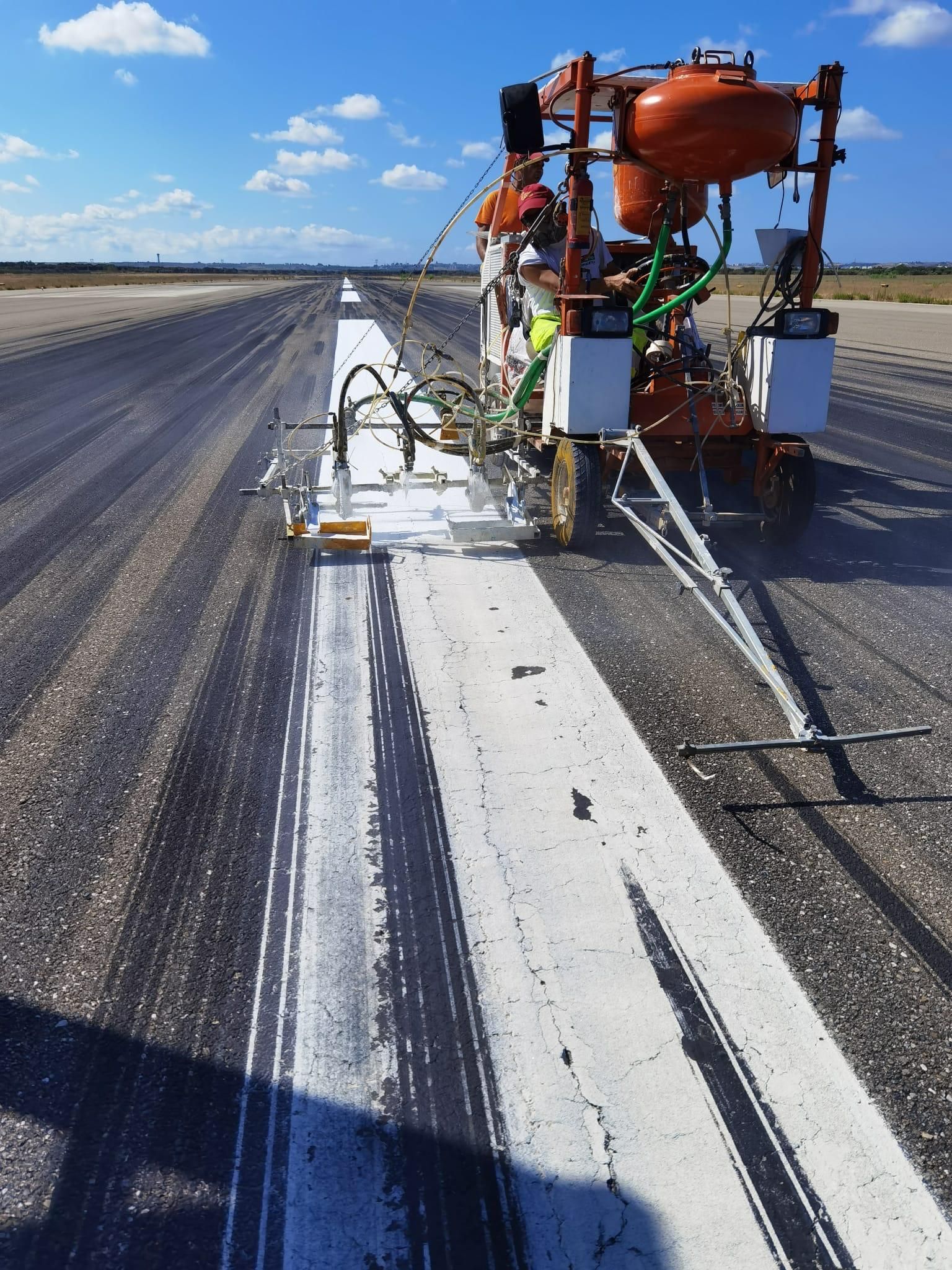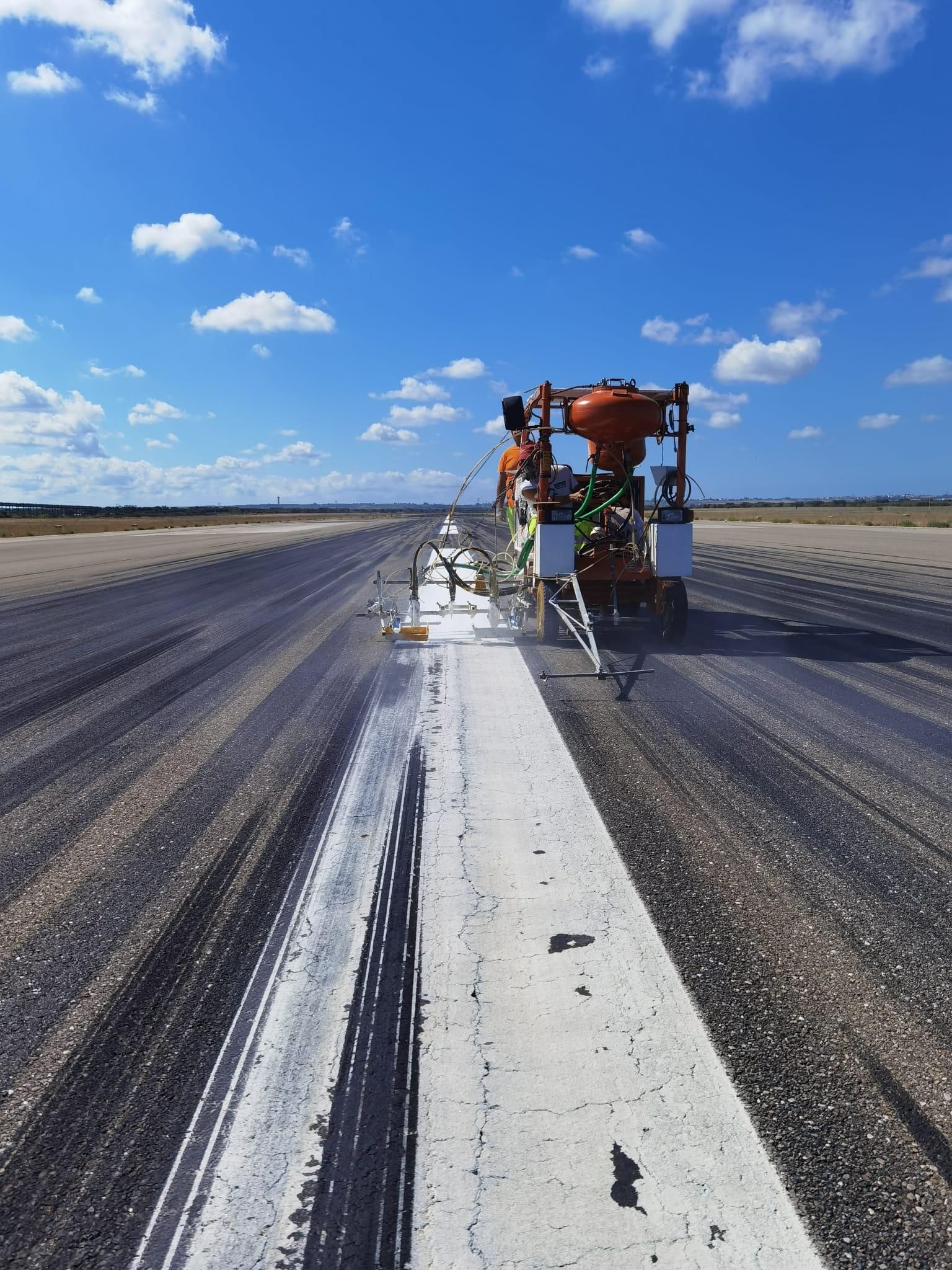 Tra i servizi dedicati agli aeroporti pugliesi, offriamo anche operazioni di idrosgommatura e idrocancellatura, eseguite con attrezzature ad alta pressione e tecnologie non invasive. L’idrosgombratura consente di pulire in profondità le superfici aeroportuali, rimuovendo residui di gomma, oli, vernici deteriorate e altri contaminanti senza danneggiare i materiali. L’idrocancellatura, invece, è impiegata per eliminare in modo preciso vecchie segnaletiche o marcature temporanee, in vista della loro sostituzione. Entrambi i servizi sono fondamentali per mantenere elevati standard di sicurezza e leggibilità, riducendo il rischio di errore operativo e migliorando l’affidabilità delle informazioni visive a terra.