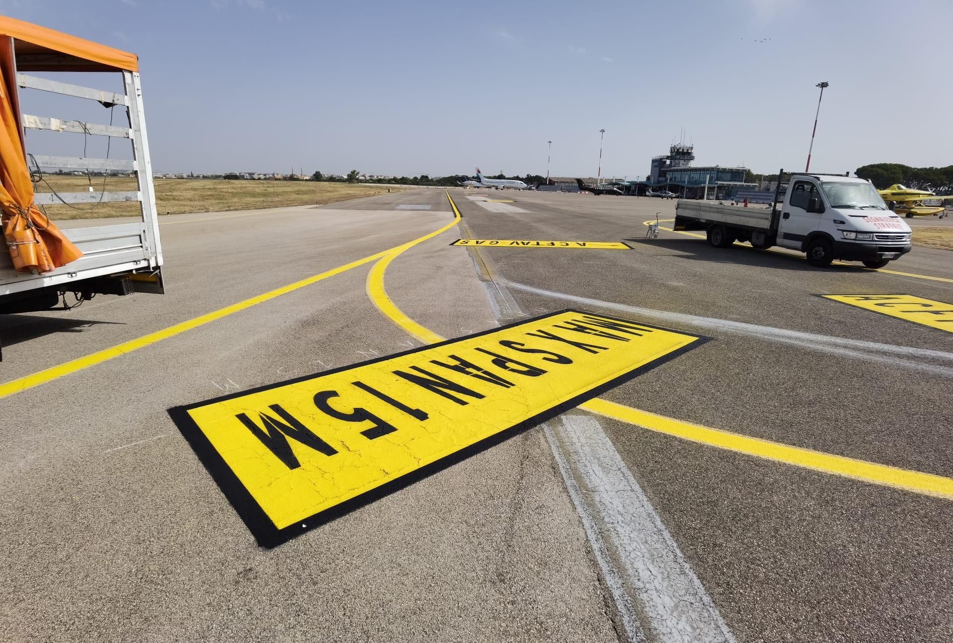 - Realizzazione di segnaletica per veicoli aeroportuali, corsie preferenziali e viabilità interna.