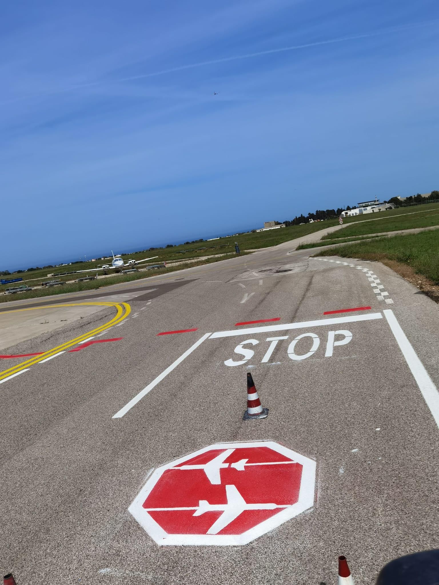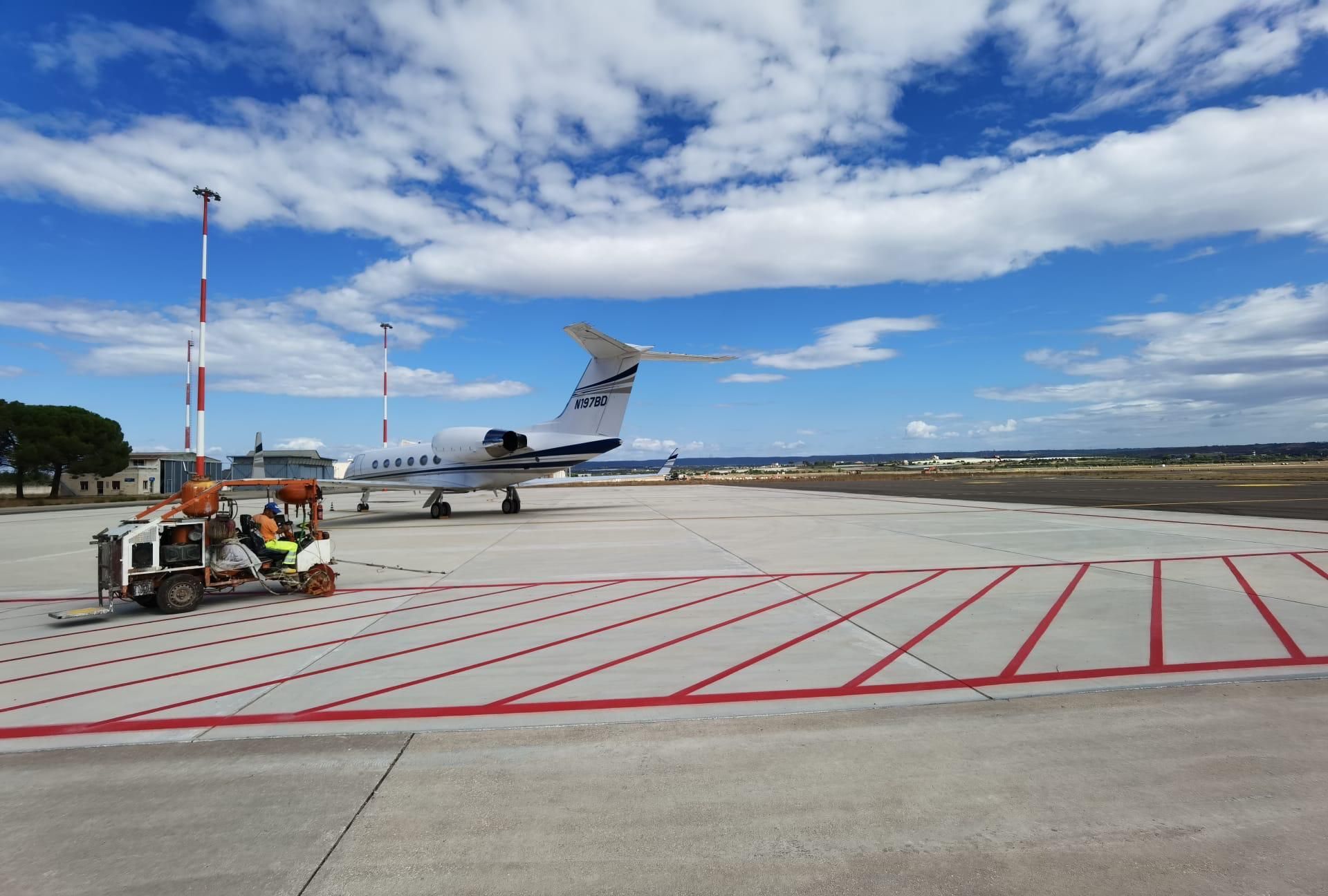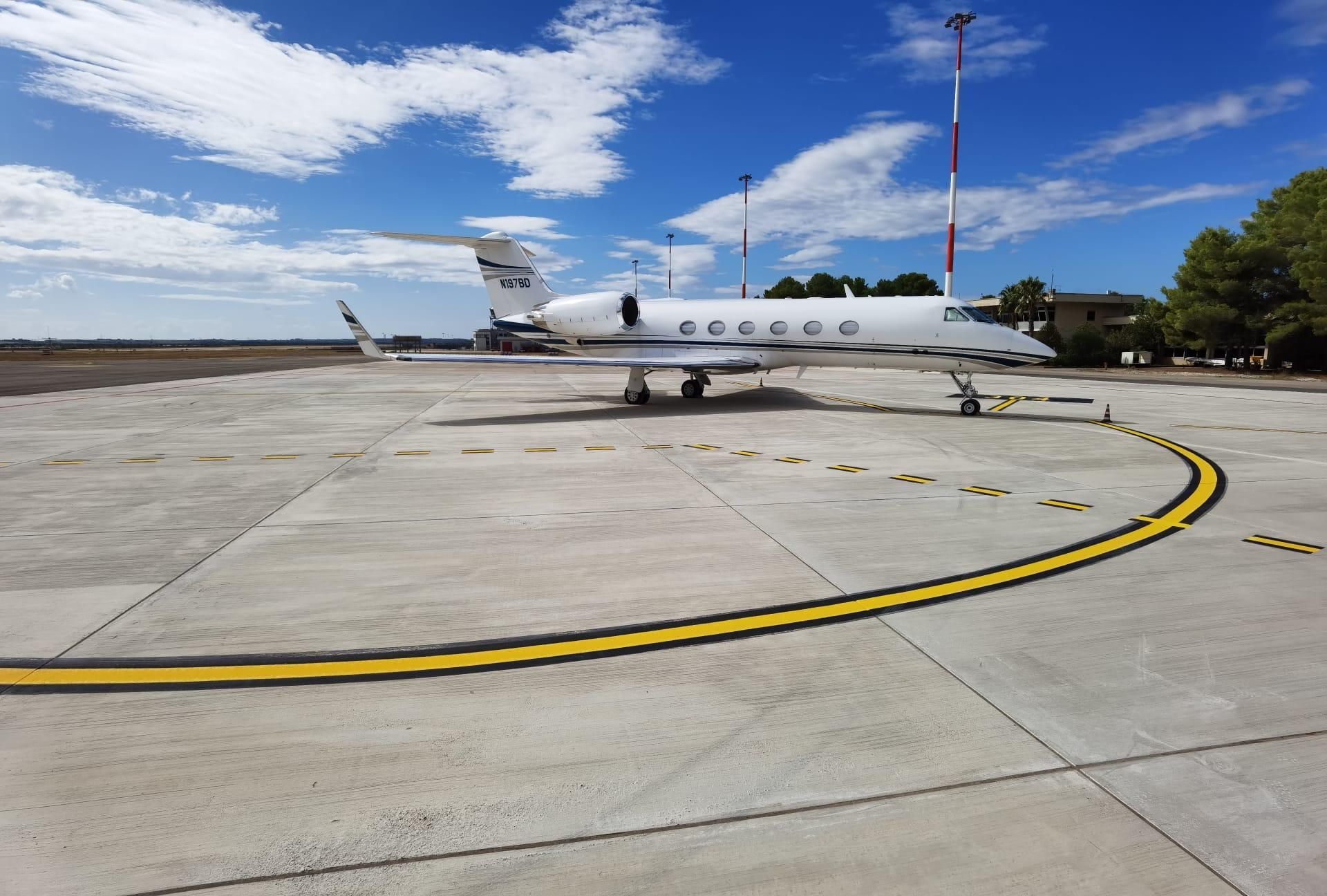- Interventi su piazzali di sosta aeromobili, con posizionamento preciso di stand, stop bar, vie di rullaggio e safety zones.